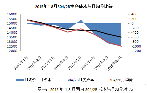 从生产角度去看,2015年1-8月,仅5月份出现了小幅红利,其他七个月份团体都体现为亏损,在304产量持稳的条件下,1-8月钢厂对304冷轧钢种 的累计亏损幅度为2600元/吨,如果另有从量优惠的话,则亏损幅度会更大,固然钢厂也会开出部门缄口单从而抵消部门亏损。即便是各钢厂的操纵方法有所差 别,只要触及300系范畴则就不行制止地陷入亏损。作为钢厂而言,面对云云的亏损并非不行蒙受,体量大的特点便是幸亏多也可以赚得多,亏偶然赚偶然,但曙 光在那边,出现了又能连续多久?