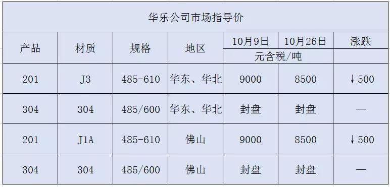 继昨日早上青山201大跌400,午后金汇开盘环比下跌500-700元/吨,诚德随后封盘后,今日暴风跌价形势依旧,华乐开盘201 J1A报价8500元/吨,比10月9日大幅下跌500元/吨,市场就这样躁动起来了!